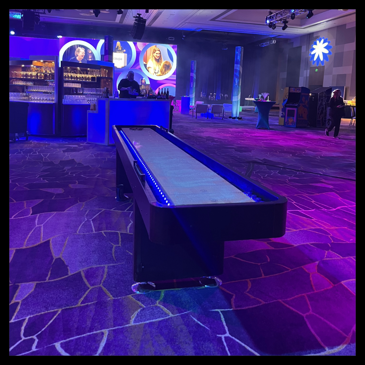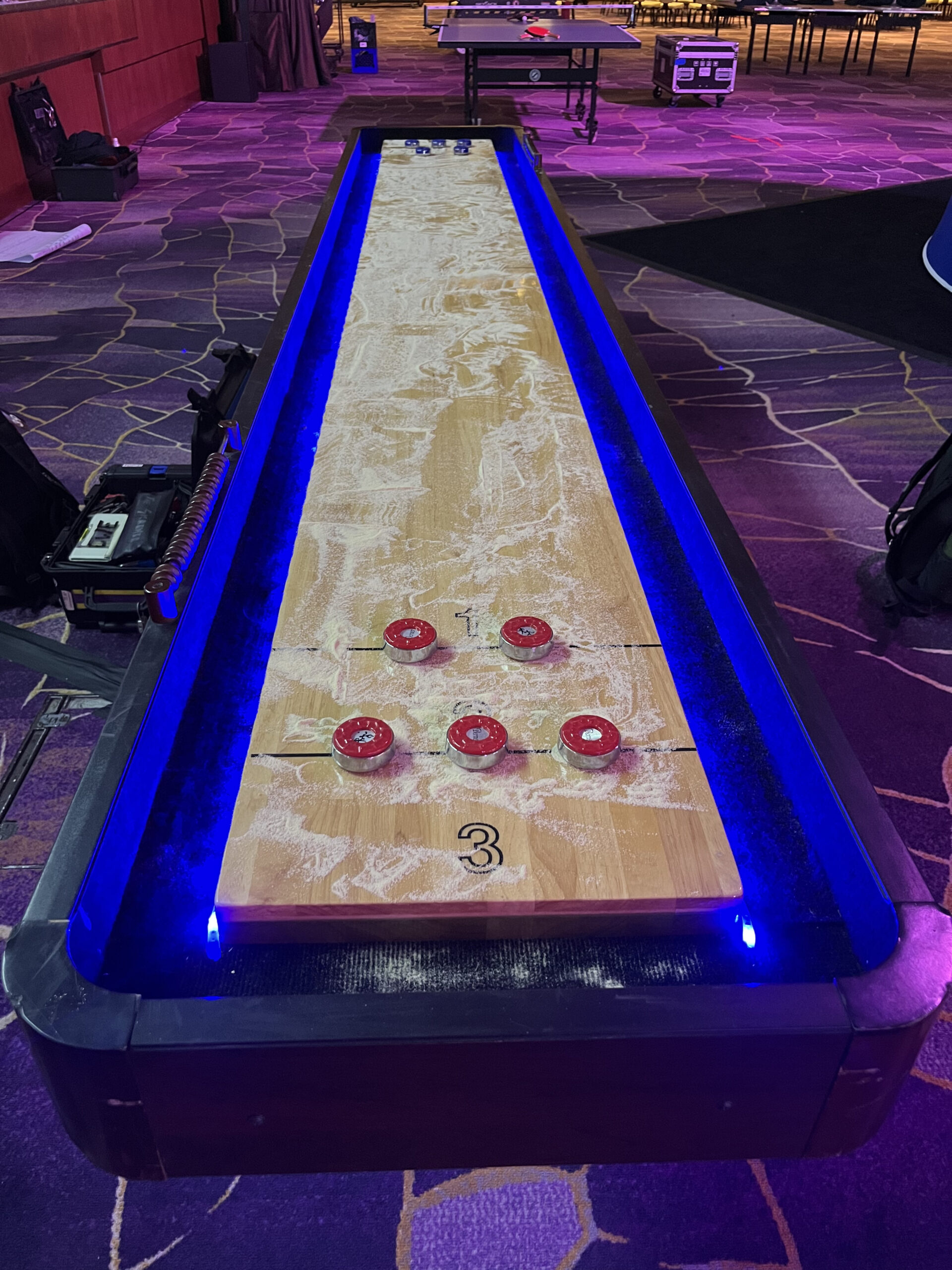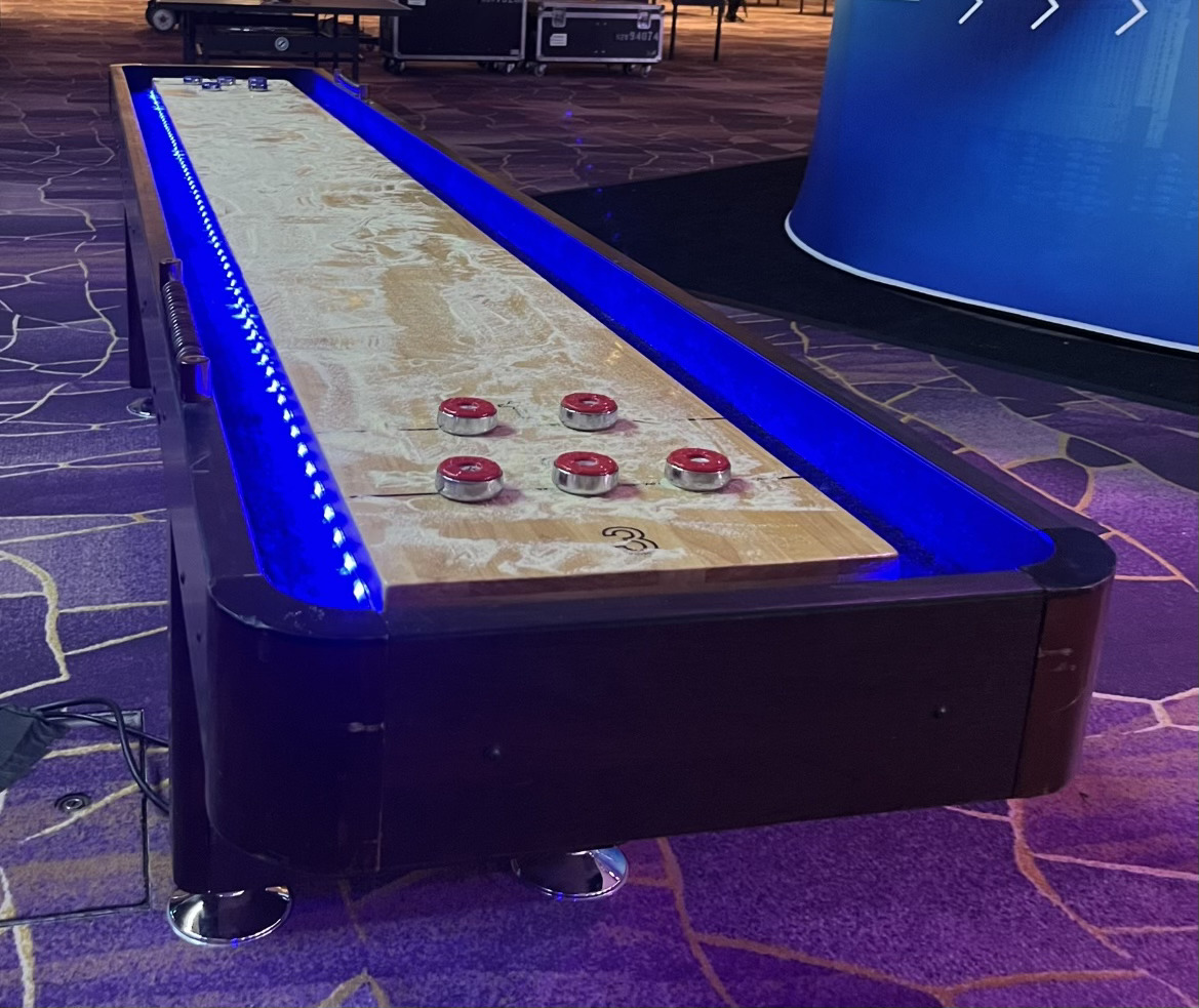 trade show booth. Check out the real shuffleboard playing