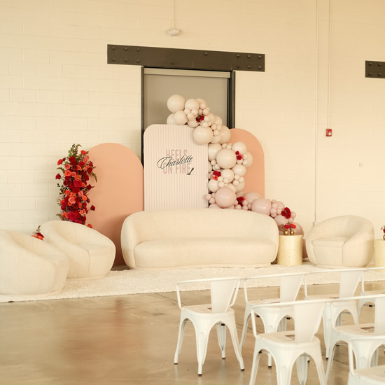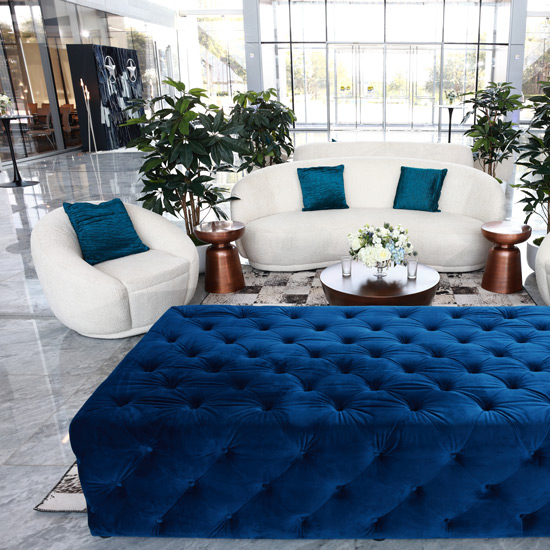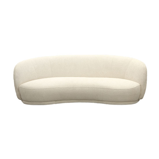 Simple and smooth boho-chic sofa with elegant rounded and curved profile features plush bouclé chenille fabric for seating that is equally comfortable and supportive.