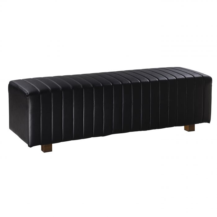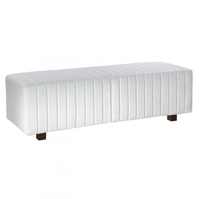 Versatile bench ottoman with on-trend channel stitch white vinyl slipcover. Available in 13 other fashion colors : Black, Light Blue, Ocean Blue, Brown, Fuchsia, Gray, Olive Green, Lavender, Linen, Orange, Red, Yellow, White