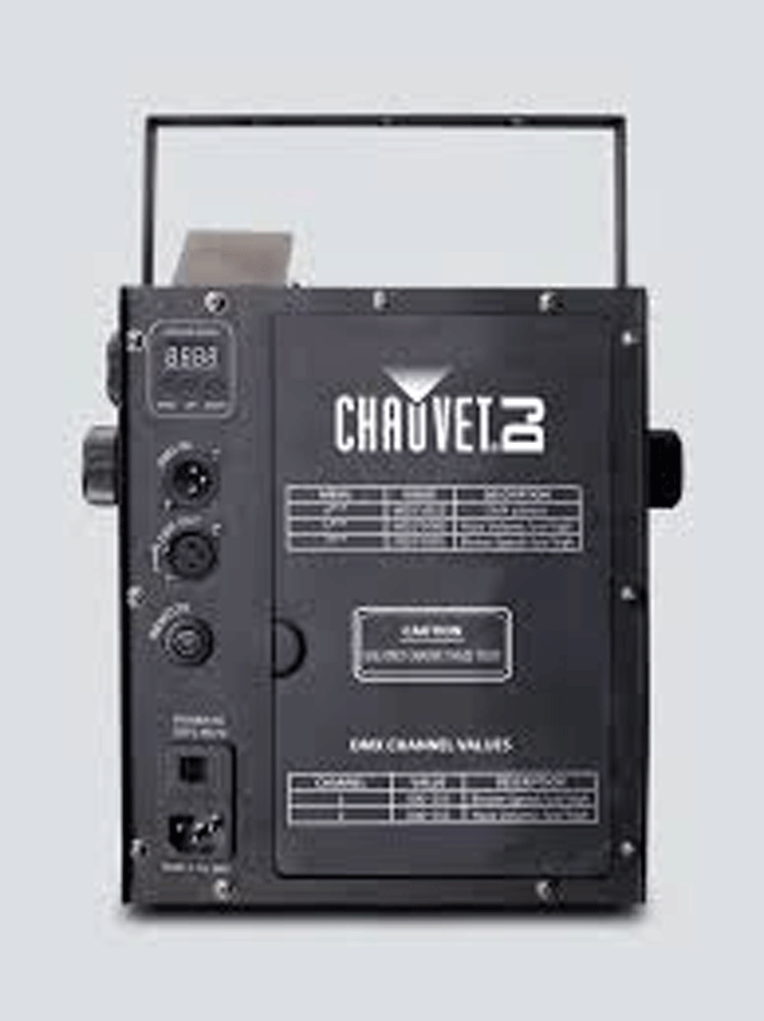 The Hurricane Haze 2 Digital from Chauvet is a water-based haze machine that creates a thin atmosphere to enhance your any of your favorite lightning effects. Chauvet designed the Hurricane Haze 2 with the ability to run continuously, and never needs to stop to reheat, which means that the haze is constantly ready-to-go. Additional features include a blower speed, haze output, and output angle control that are all adjustable to give you complete control over the type of atmosphere you want to create. The low fluid indicator gives a warning before running out of fluid, so you won’t be caught off-guard. Control is via DMX or the included wired, timer remote, which stores conveniently in the fixture for easy use and transportation.