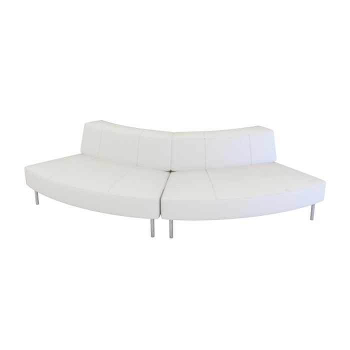 Endless Small Curve Low Back Loveseat – White is a modular white vinyl small convex curve low back loveseat with chrome legs that seats up to 3 persons comfortably.