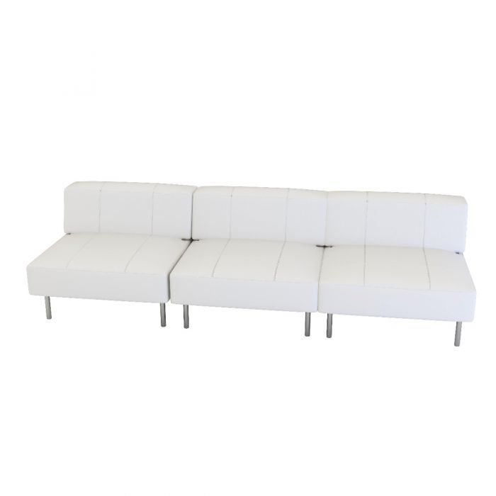 Endless Square Low Back Sofa – White is a large modular white or black vinyl low back sofa with chrome legs. Seats up to 5 persons comfortably