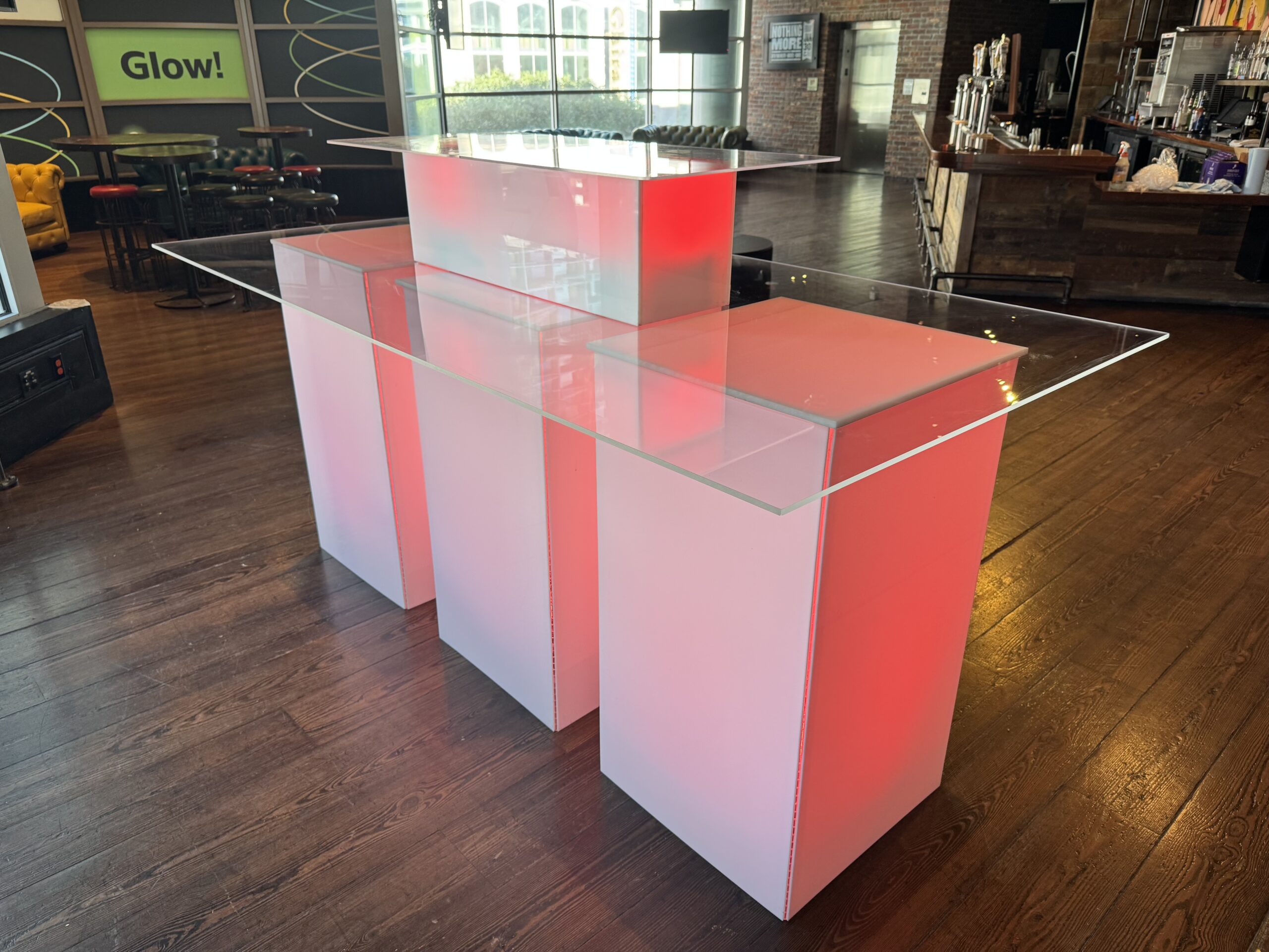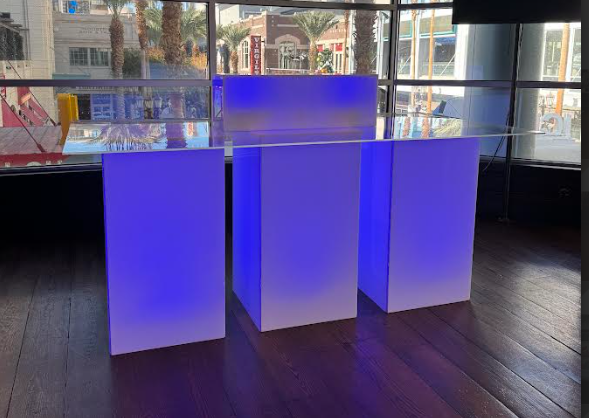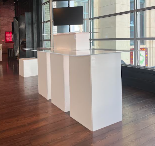 Stylish and functional, the Geo Hybrid Bars can be used in various ways… a bar, serving table, product display and/or branding medium.
