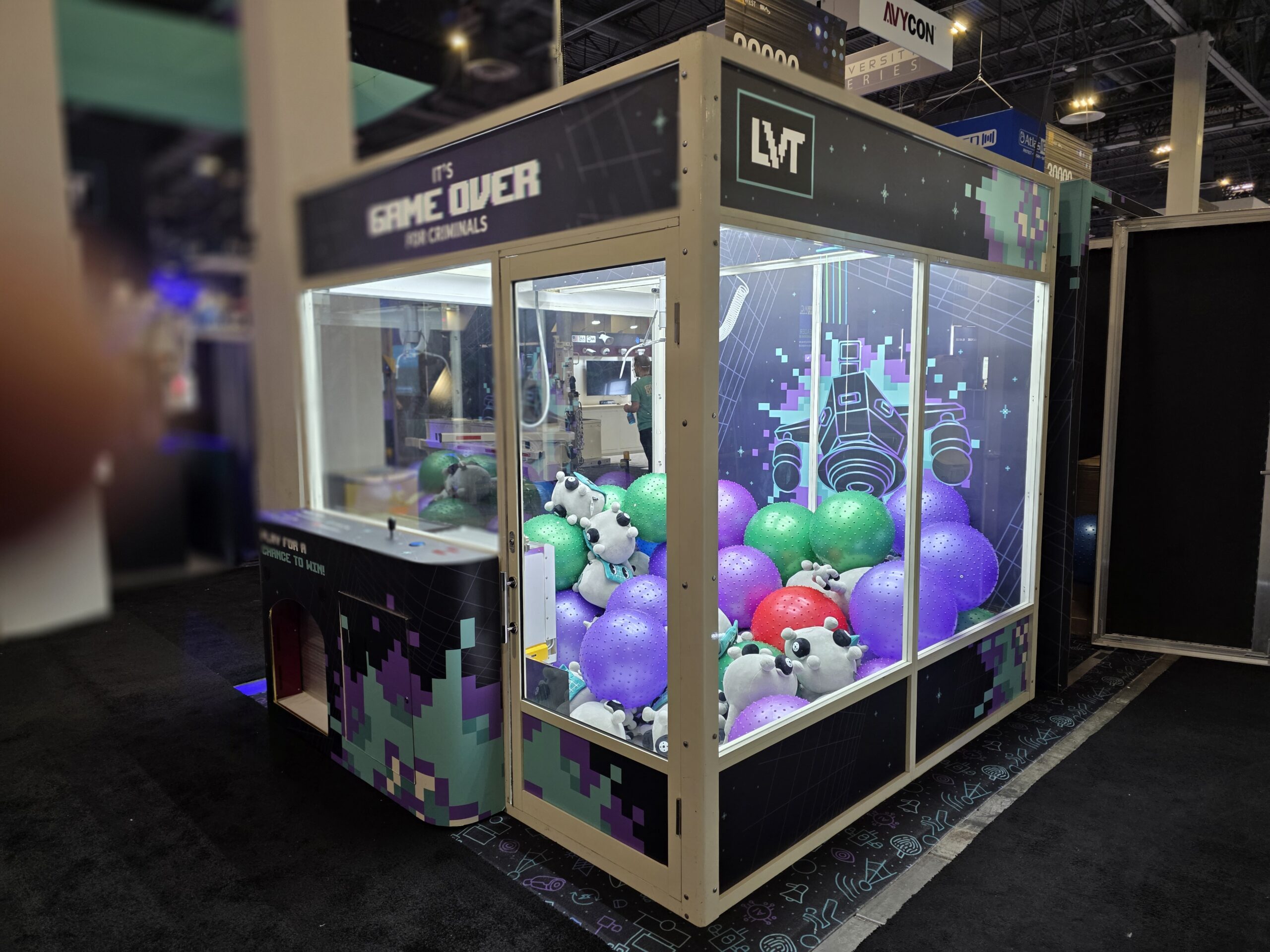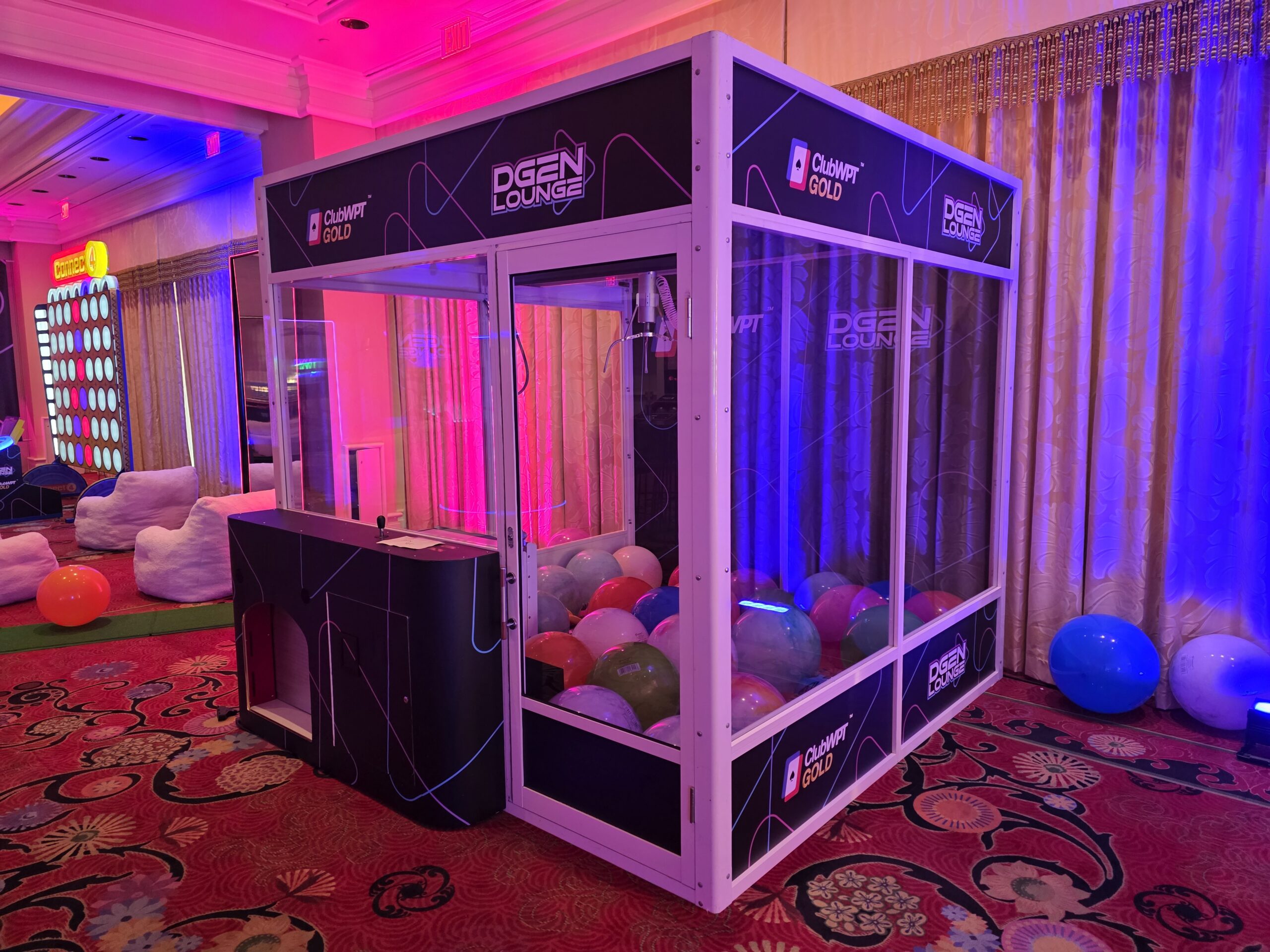 Now we’ve got another option for those who say “bigger is better” and have more space to take advantage of that. Giant size means giant toys and giant profits!  Standing 8 feet high, 8 feet wide, and 9 feet deep, this is a very impressive crane!  Comes with adjustable claw strength and the ability to vend 25″ to 45″ merchandise.  With prizes like that, this crane will definitely draw a crowd.  Transported in rolling cases.  Custom graphics available.  Plastic prize spheres are not currently available – beach balls and large colored bounce balls available