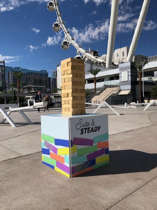 Create the tower, then take turns removing a piece and adding it to the top without making the whole tower tumble. The game builds from approximately 3’6″ at the start of the game to 5′ maximum in play. Blocks are lightweight and easy to manipulate.