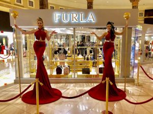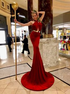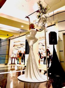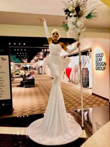 The “Glamazon Greeters” stand 9 ft. tall, elegantly poised above your cocktail audience and welcoming your guests at the front entrance of your event. Acting as “human pillars”, these elegant, stationary models are perfect for photo snapshots. They are available in blue, gold, silver, purple and pink in stock. Other colors can be created at an additional charge. They are available in blue, gold, silver, purple and pink in stock. Other colors can be created at an additional charge. IMPORTANT: these are stationary characters NOT strolling.