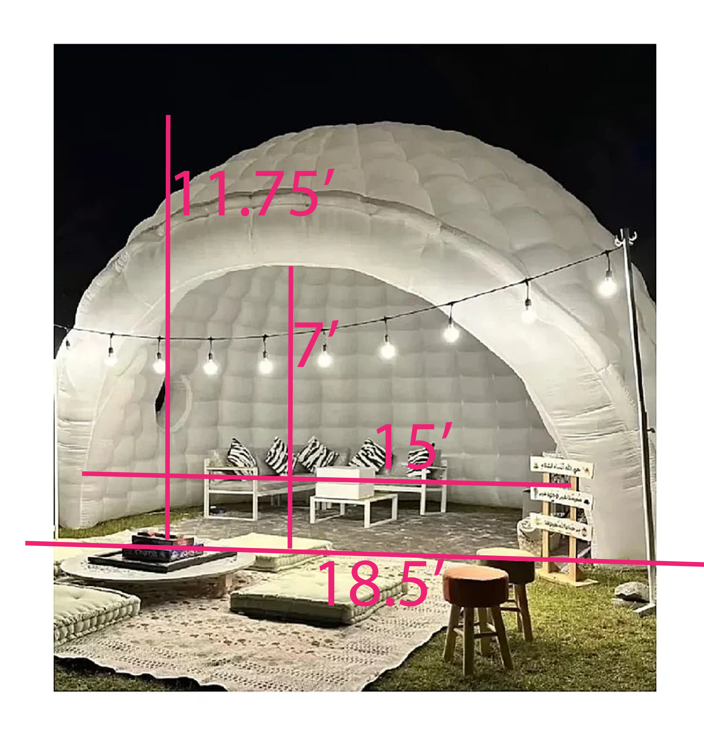 This inflatable Igloo Dome is a very striking inflatable dome structure, and can be used as a temporary space for presentations, workshops or product launches. This dome makes an impact by its design and can be illuminated by means of LED in any desired color.