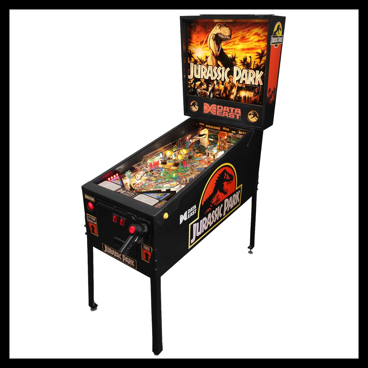 1993 Data East’s Jurassic Park park pinball machine was designed after the movie of same name. Marketing slogans used to promote the machine include: “Jurassic Park, the movie event of the summer, the pinball event of the year!”, “If it’s not Jurassic Park, it’s Extinct!” and “A Pinball Adventure 65 Million Years in the Making.”