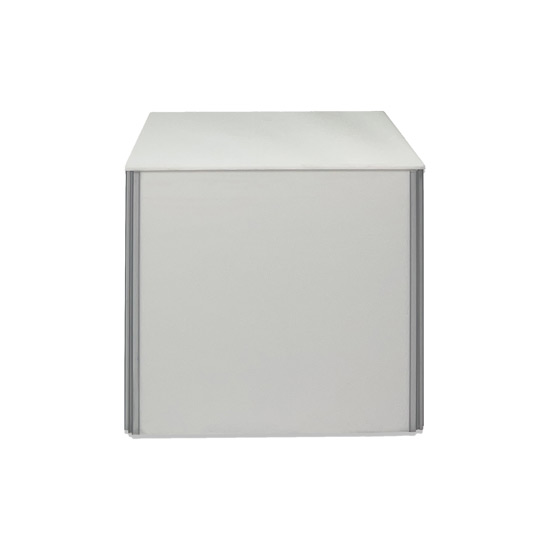 Acrylic end table operated by a remote-controlled LED light box, featuring an endless variety of selectable colors.