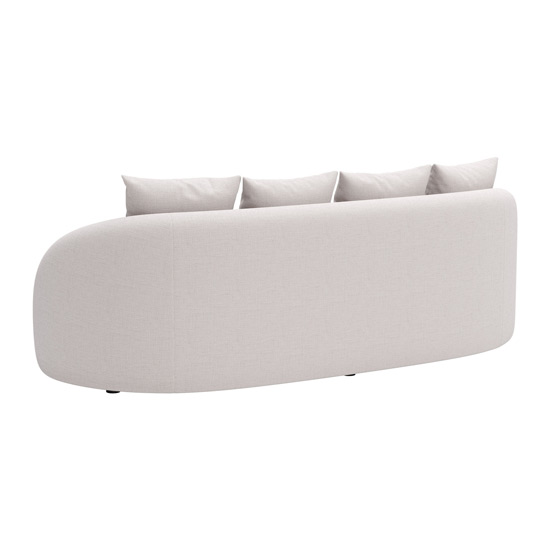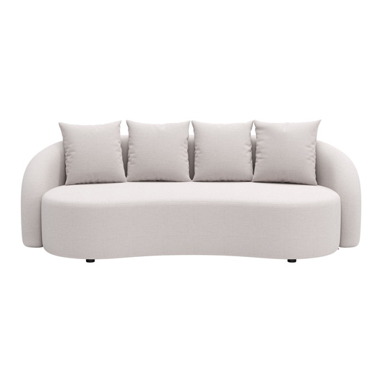 Versatile indoor/outdoor sofa features robust powder-coated aluminum frame and luxurious olefin-wrapped beige cushions for ultimate comfort and durability.