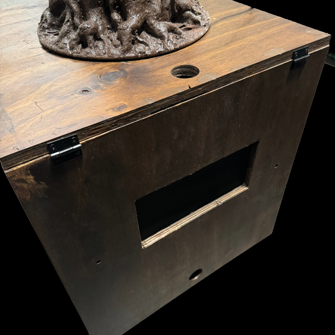 Optional Wooden Stand that is 2′ x 2′ with ventilation for wireless battery is available.
