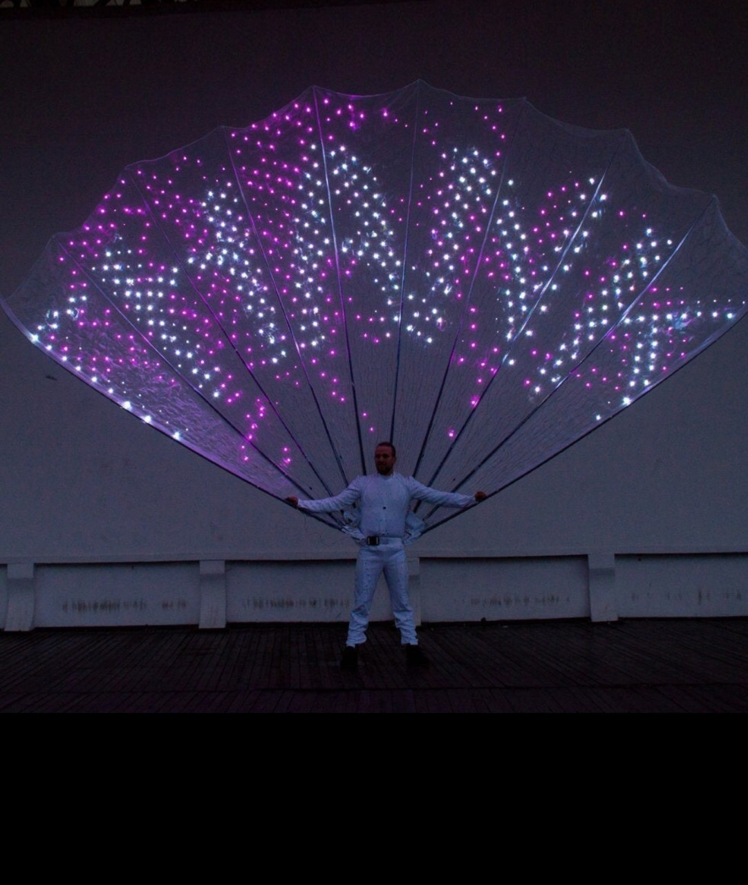 LED Peacock Tail with 1000 LEDs show not only light up effects, but also words and logos on it thanks to the Smart technology.