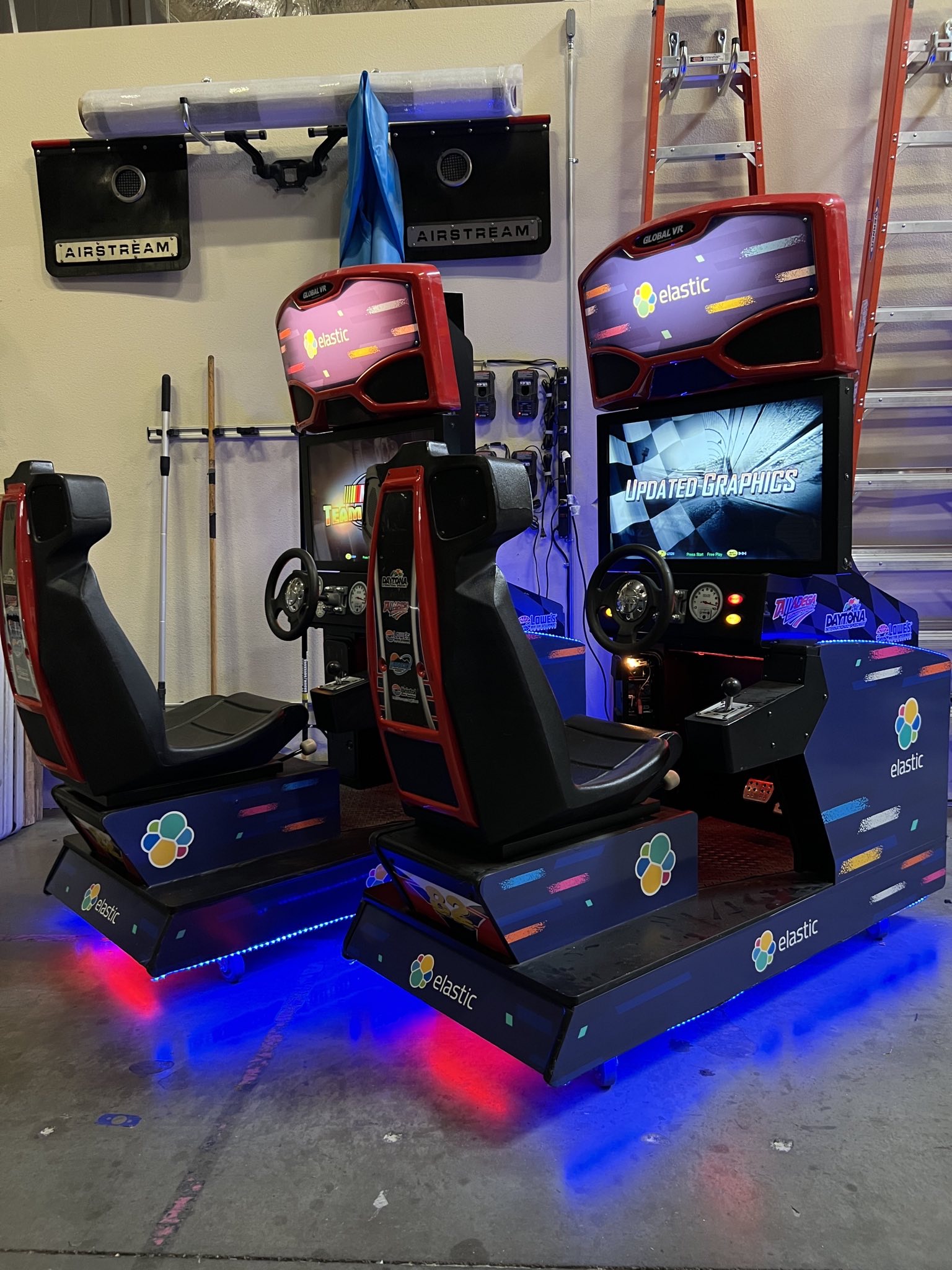 NASCAR racing game! Unrivaled graphics choose from all your favorite NASCAR drivers and courses. Units are linkable; perfect for fast paced competition. Players can select from multiple “real life” tracks and choose to be one of the actual “real life” professional NASCAR racers! We can electronically link all six-player positions so each player can race against each other. Add a huge overhead screen for other guests to watch the action!