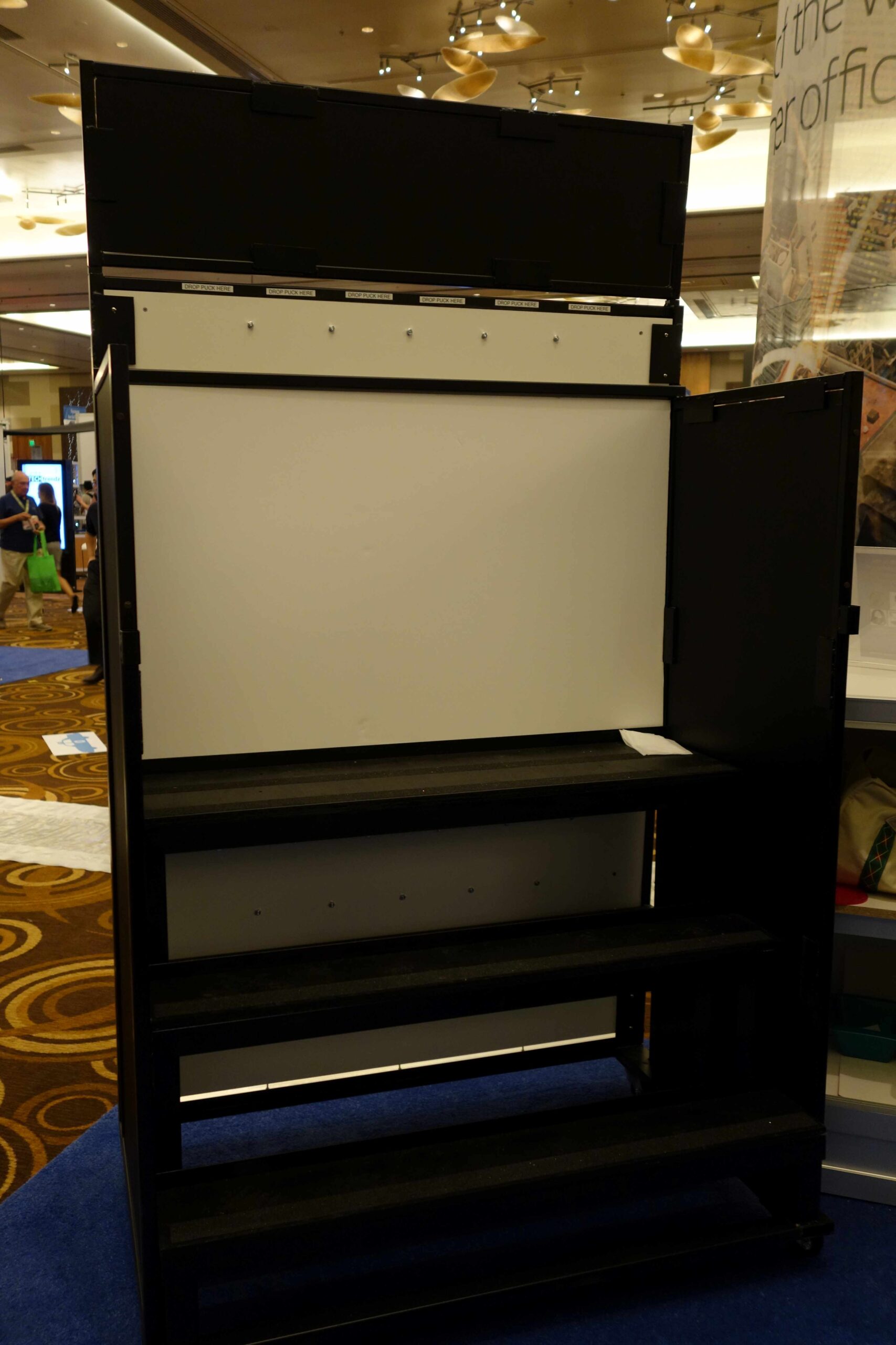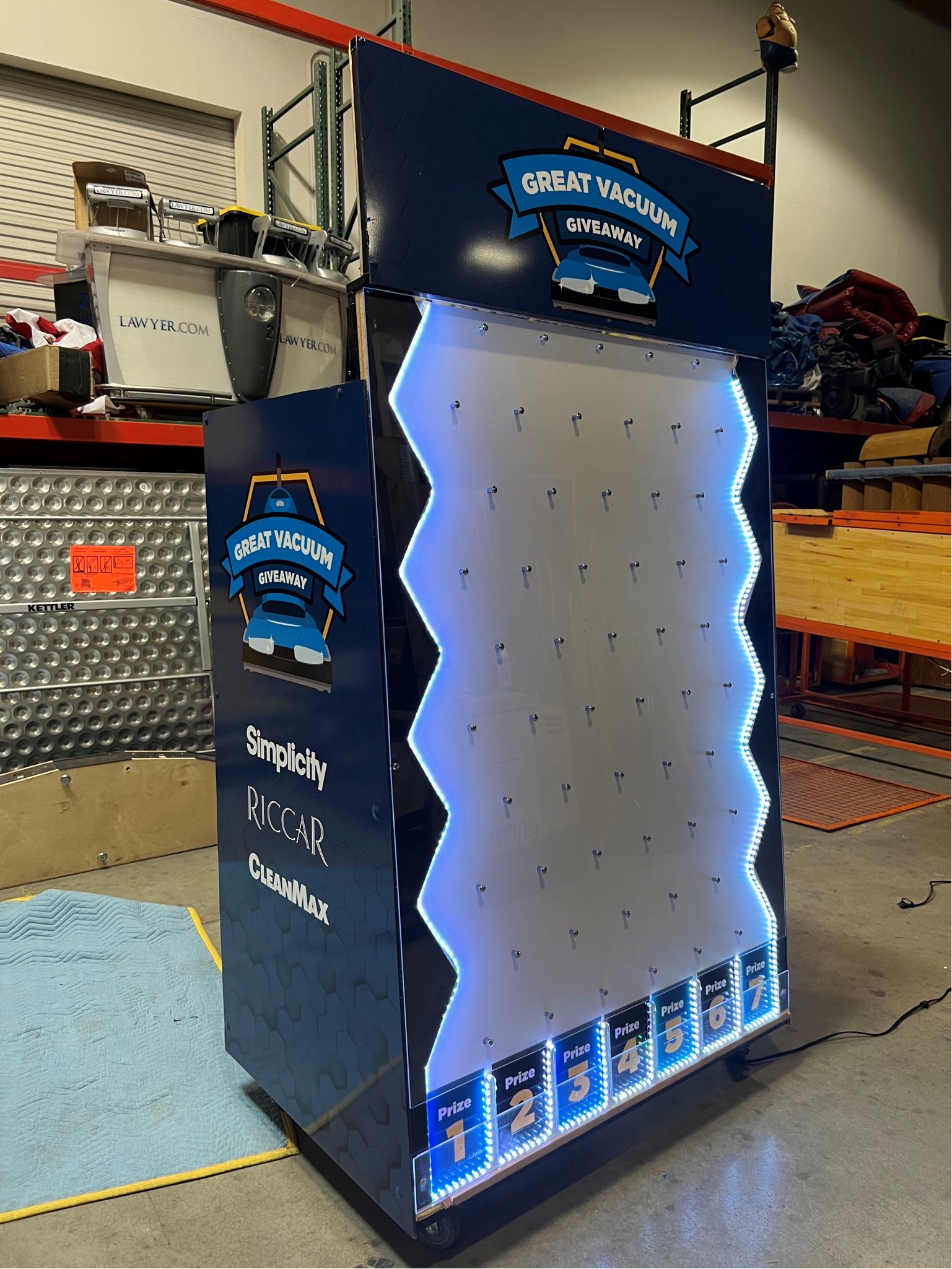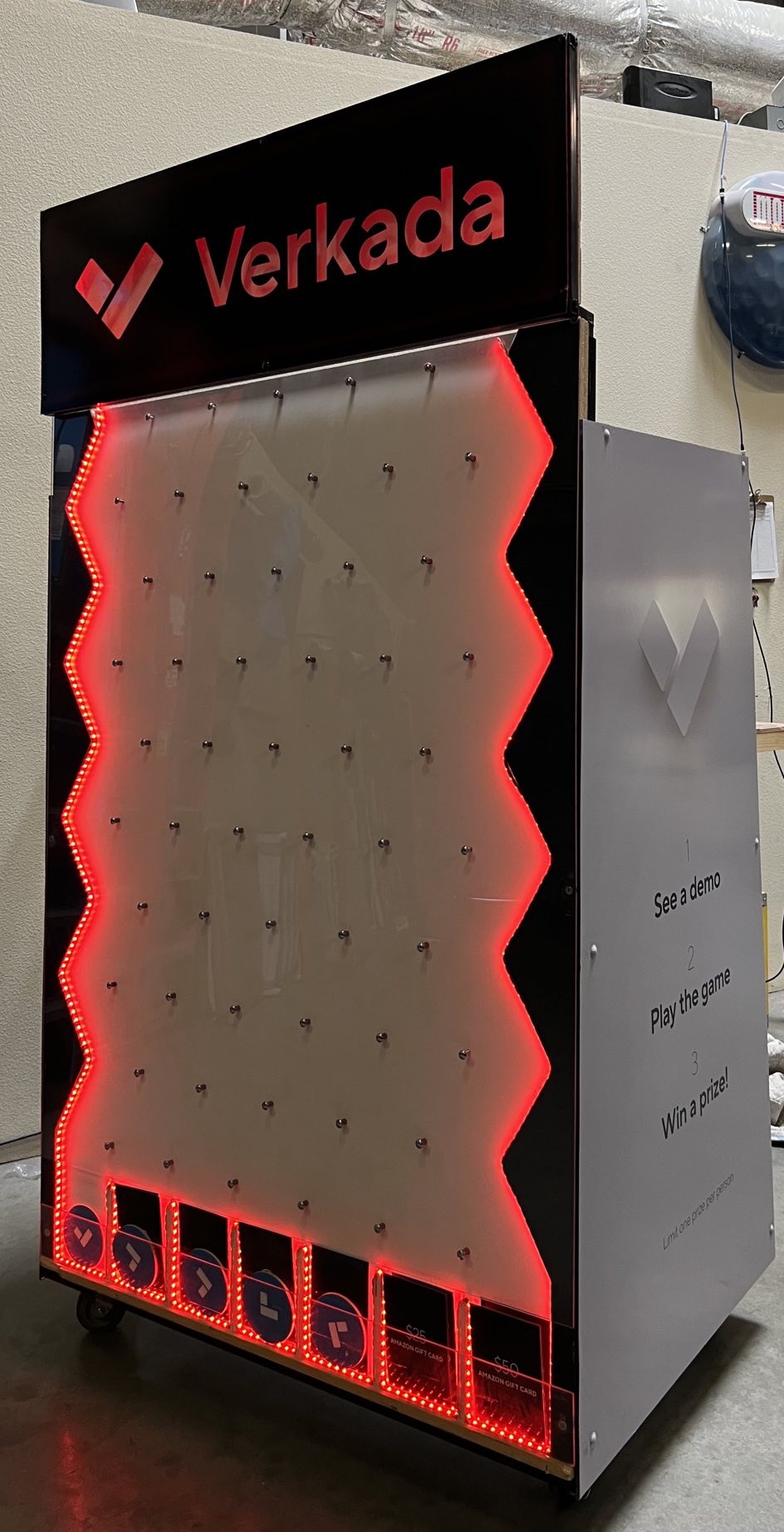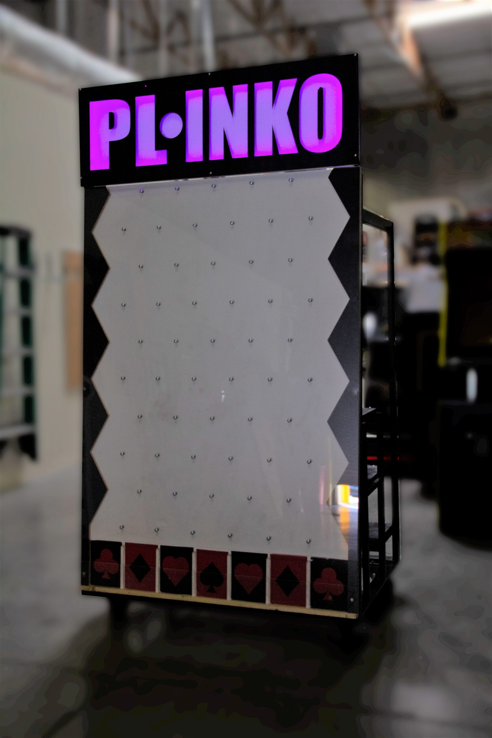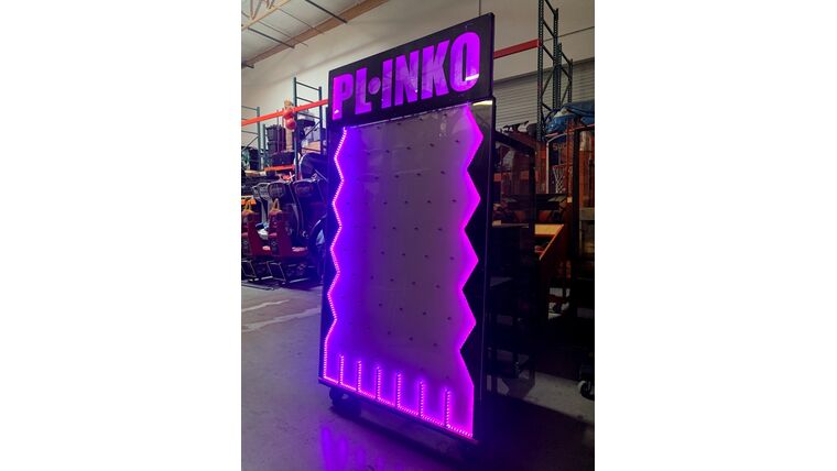 Plinko is played on a nearly vertical board populated with offset rows of pegs. The player chooses a slot in the top of the board, drops the chip into it, and watches as the chip bounces down the board.  You’ll see the crowds line up, as customers “plink” their way to prizes. Watch your business grow as players line up at your event or trade show booth.