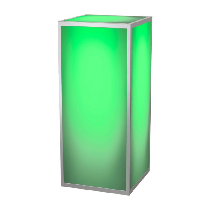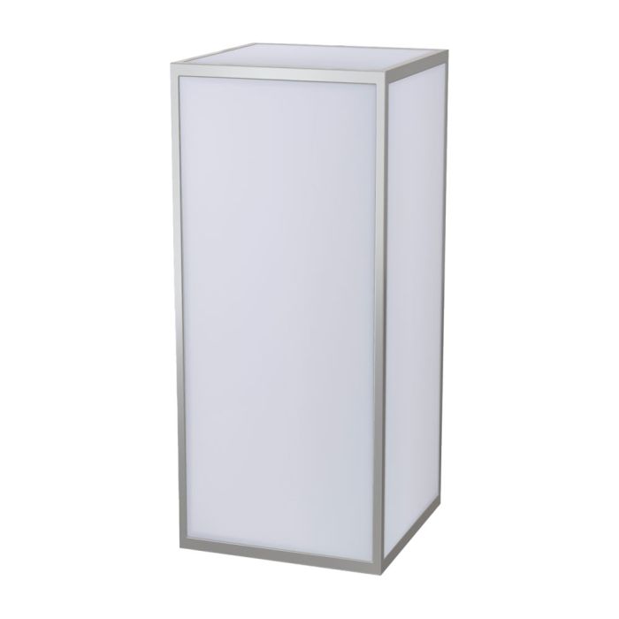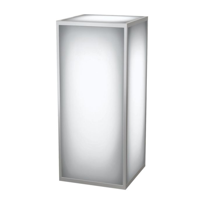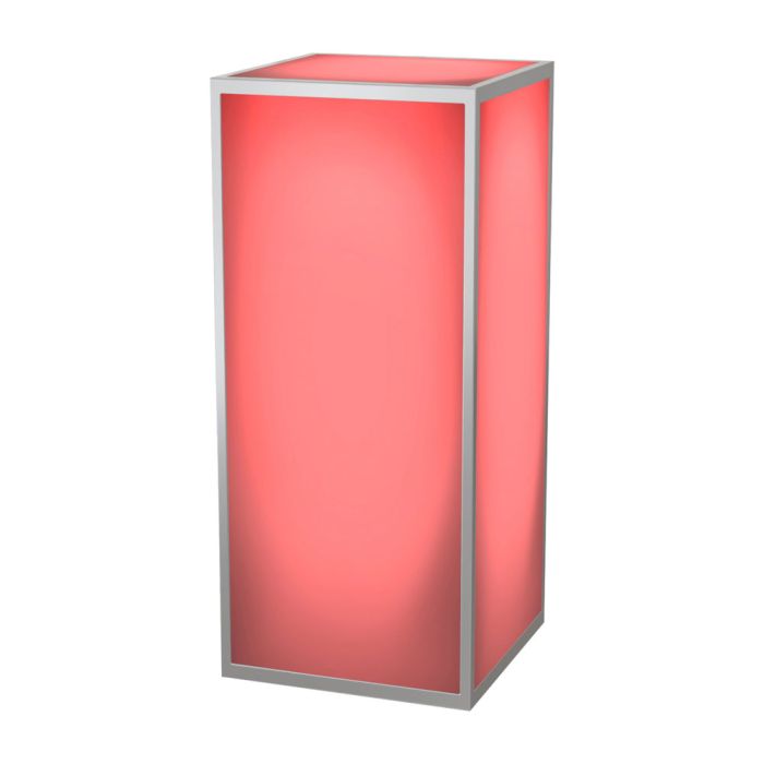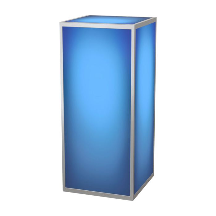 The 42” acrylic pedestal with polished steel frame can be used as a petite drink table or decorative display. Rent unlit or with LED lighting to add a captivating glow for more ambiance.